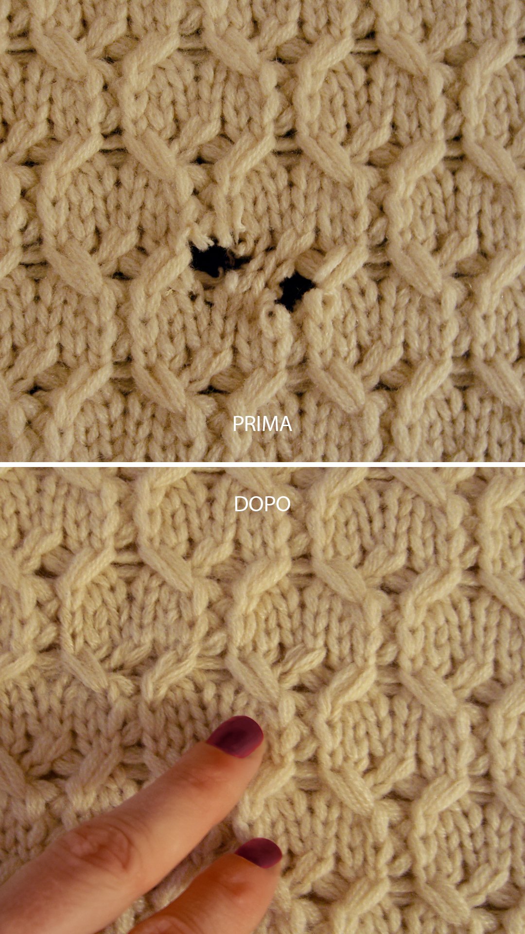 - I fili utilizzati per la ritessitura sono quelli dal capo stesso. Se si usa un filato "simile", sia su maglieria che su tessuto, non è un vero Rammendo Invisibile.
