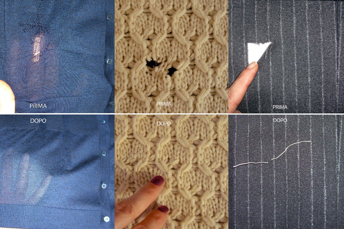 Le ritessiture (Rammendi Invisibili) sono restauri effettuati a mano, filo per filo, su lente d'ingrandimento, da una professionista altamente qualificata.